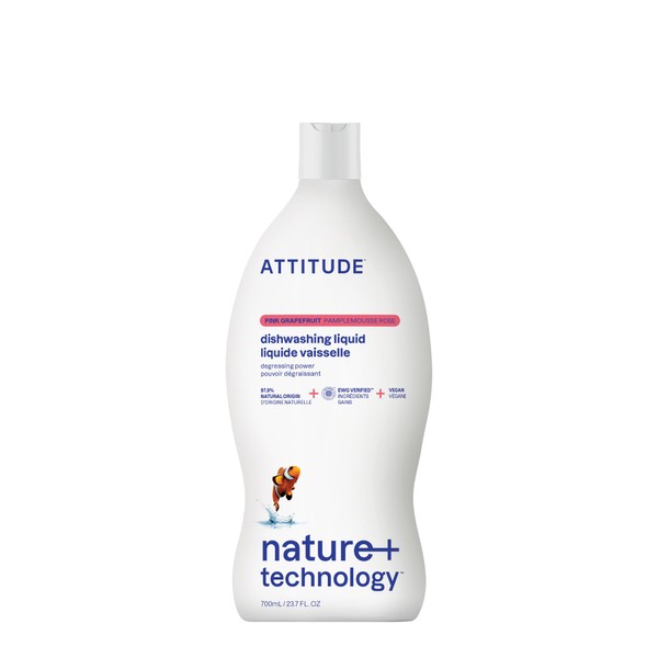 ATTITUDE Dish Soap, EWG Verified, Plant-Based & Vegan Dishwashing Liquid, Naturally Derived, Pink Grapefruit Scent, 23.7 Fl Oz