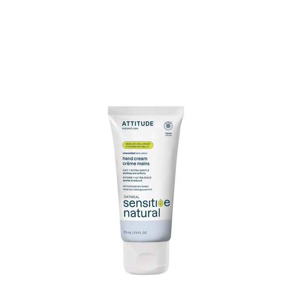 ATTITUDE Hand Cream for Sensitive Skin with Oat, EWG Verified, Dermatologically Tested, Vegan, Unscented, 75 mL