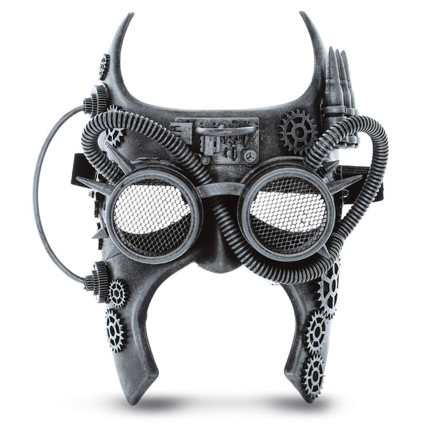 Attitude Studio Steampunk Gladiator Half Mask Robot Goggle Costume - Silver