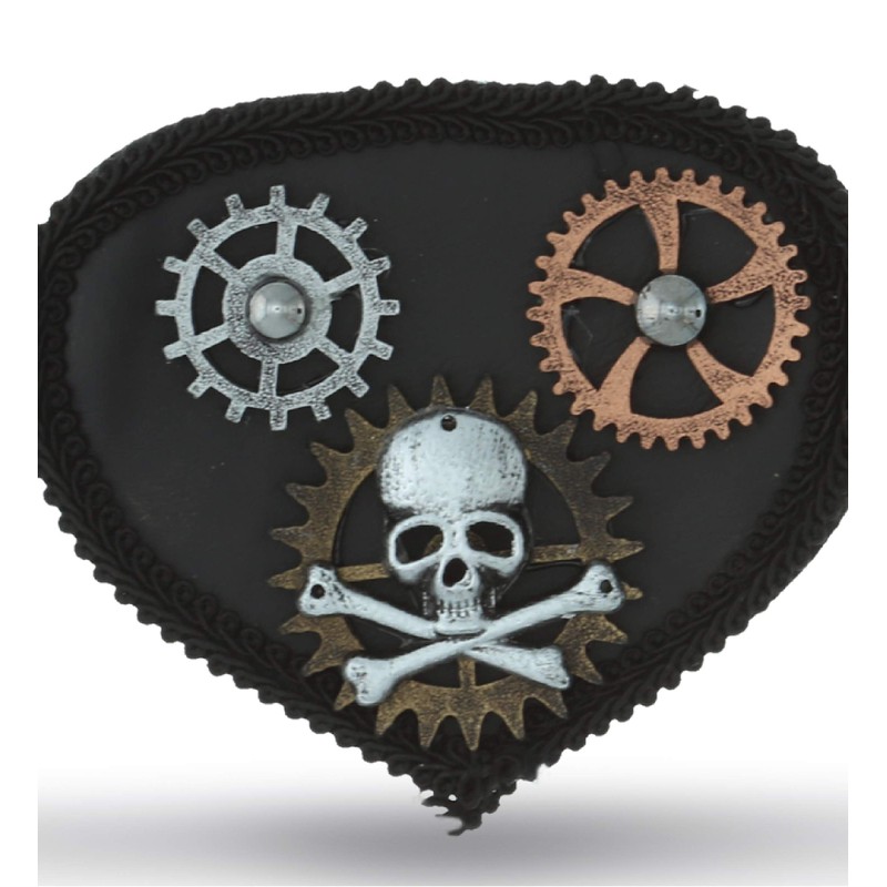 Attitude Studio Steampunk Pirate Eye Patch, Metallic Skull & Gears - Black Lace