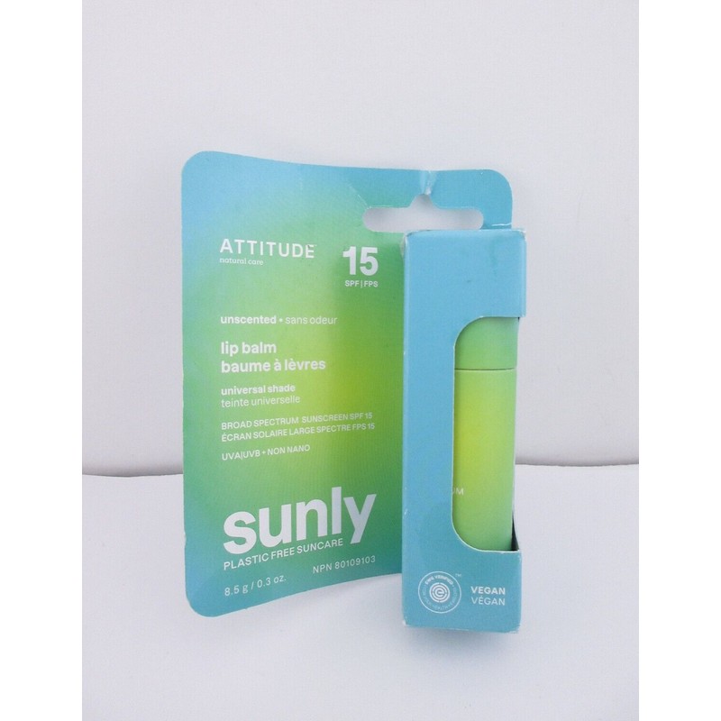 ATTITUDE Sunly UNSCENTED Lip Balm, SPF 15, Universal Shade, 8.5 g/0.3 oz - FREE SHIPPING