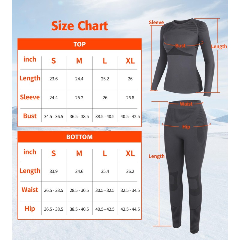 - For Any Occasions: Thermal base layer for cold weather is an ultimate selection for various outdoor activities such as skiing, hiking, mountaineering, running, cycling, hunting and fishing