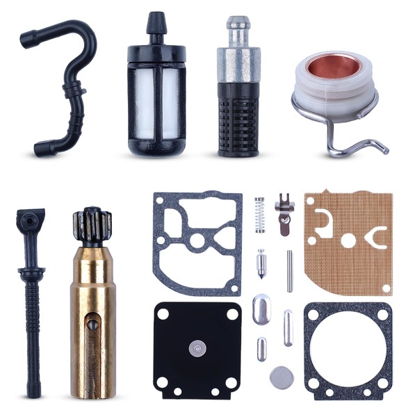 - You will get 1 x Carburetor Repair Kit, 1 x Oil Pump, 1 x Worm Gear, 1 x Oil Line, 1 x Oil Filter, 1 x Fuel Line, 2 x Fuel Filters.