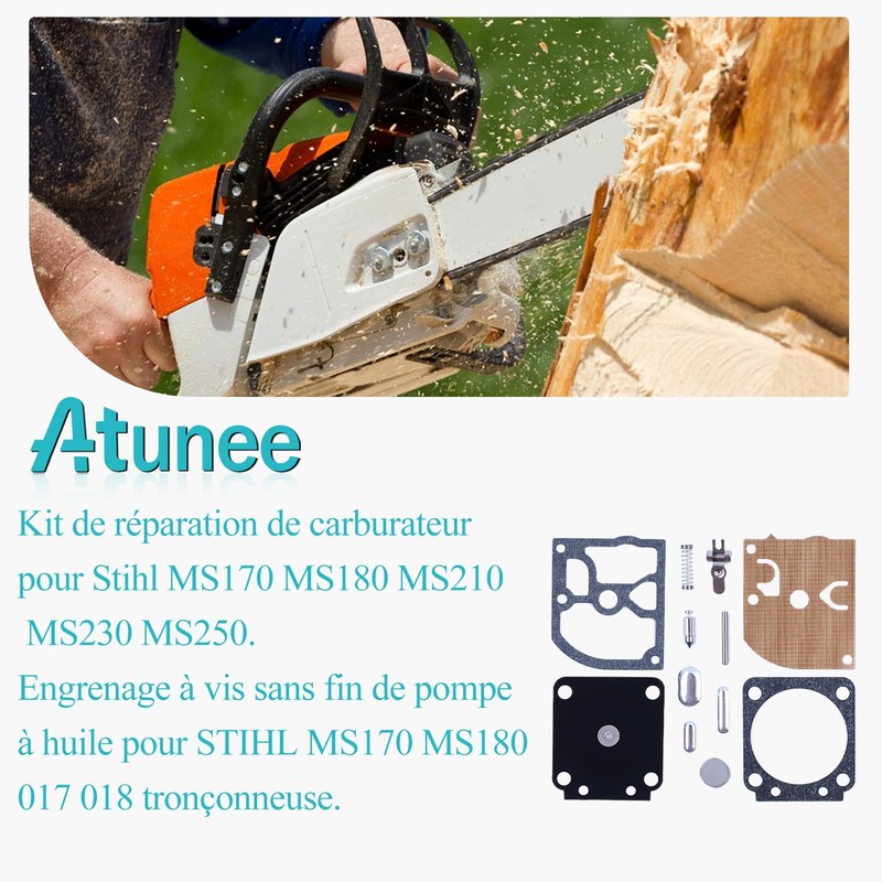 Atunee Oil Pump Worm Gear Kit for Stihl 017 018 MS180 MS170 MS 170 MS 250 Chainsaw with Carburetor Turbine Fuel Hose Oil Hose Repair Kit