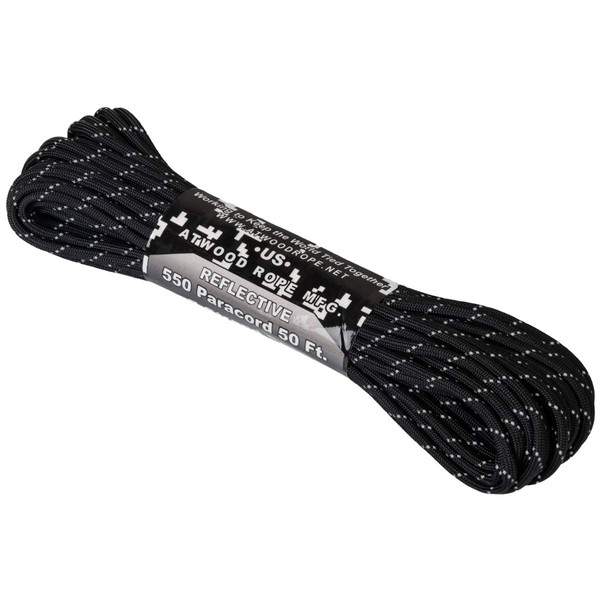Atwood Rope 50ft 550 Reflective Paracord Black
