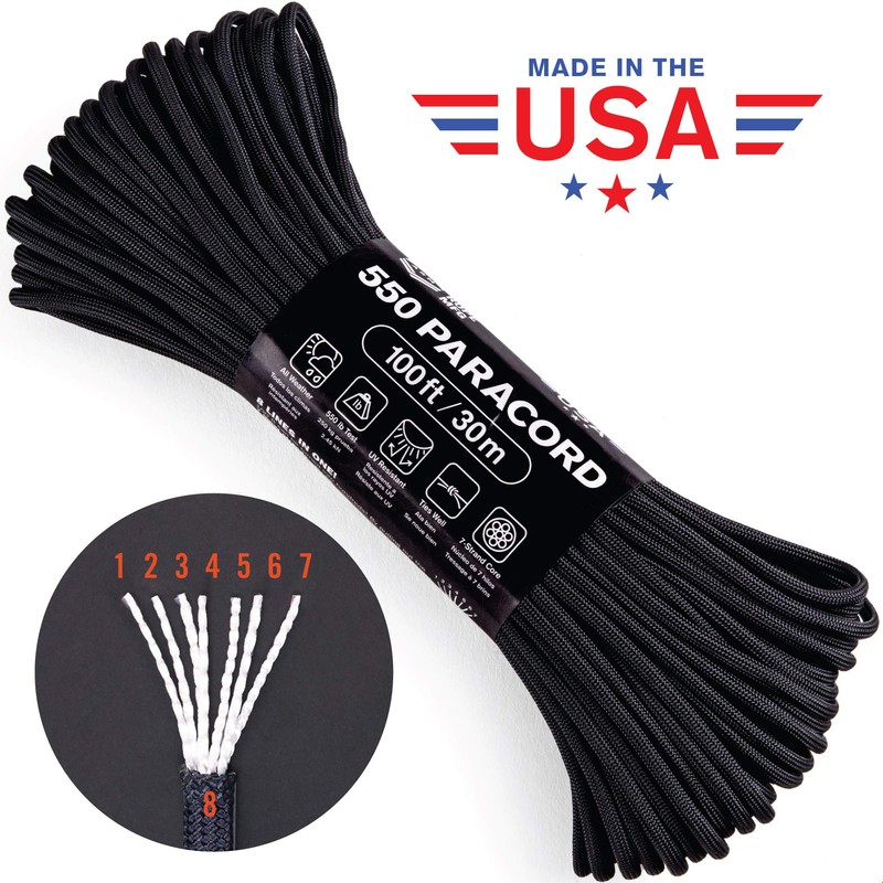 Atwood Rope MFG 550 Paracord 100 Feet 7-Strand Core Nylon Parachute Cord Outside Survival Gear Made in USA | Lanyards, Bracelets, Handle Wraps, Keychain (Burnt Orange)