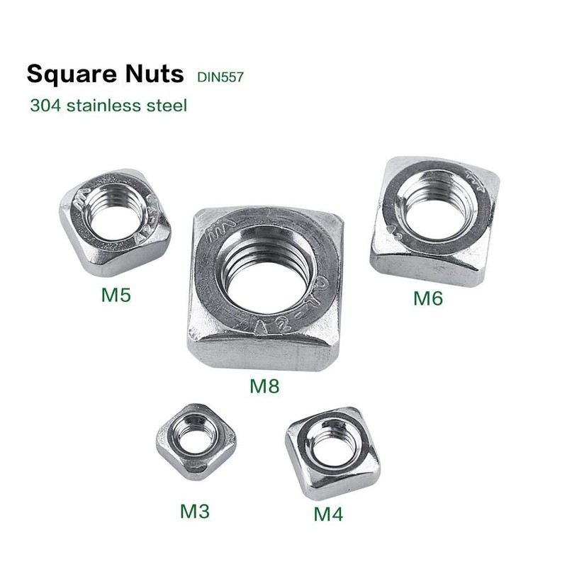 Atyhao 100pcs Stainless Steel Square Nuts M3 Thread Nuts Machine Screw Nuts Fastener Tools (M3)