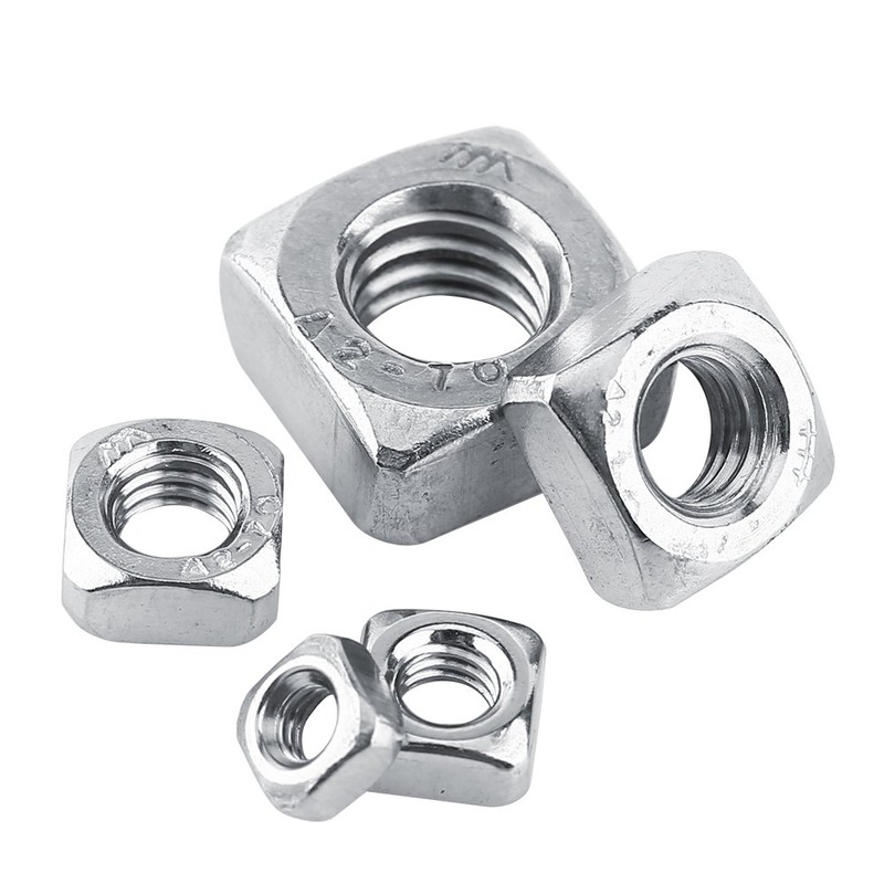 A square nut is a four-sided nut. Compared to standard hex nuts, square nuts have a greater surface in contact with the part being fastened, and therefore provide greater resistance to loosening. They are also much less likely to become rounded-off after repeated loosening and tightening cycles.