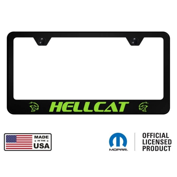 Au-TOMOTIVE GOLD Green Dodge SRT Hellcat Logo Black Plastic License Plate Frame