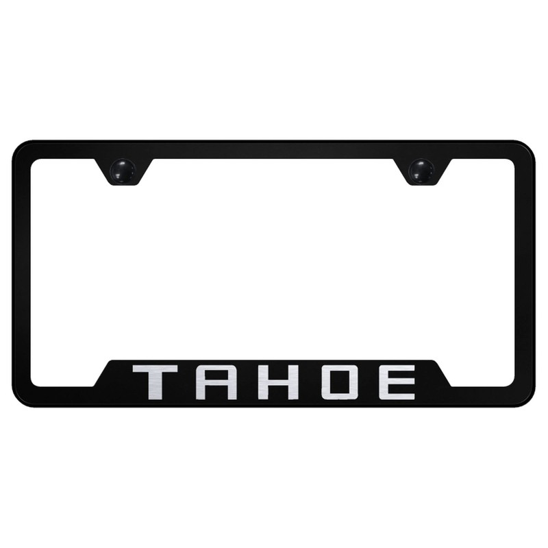 Au-TOMOTIVE GOLD Laser Etched Logo Cut-Out License Plate Frame for Chevy Tahoe (Black)
