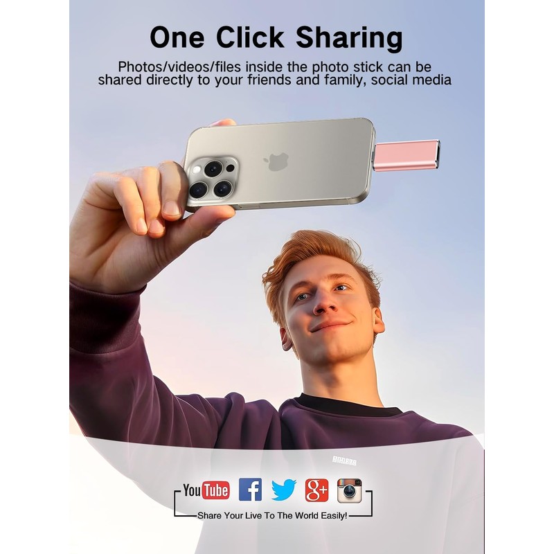 - Watch Movies, Photos and Play Music Directly From Phone Flash DriveStore your favorite videos, audios and music on your iPhone's Photo Stick, then seamlessly plug and play on your iPhone or iPad anytime, anywhere. No more need for Internet or WiFi. This iPhone storage device plays videos in many different formats.Pictures stored on the Phone storage device also support different formats. Great way to store all your pictures and videos on an phone external storage device.