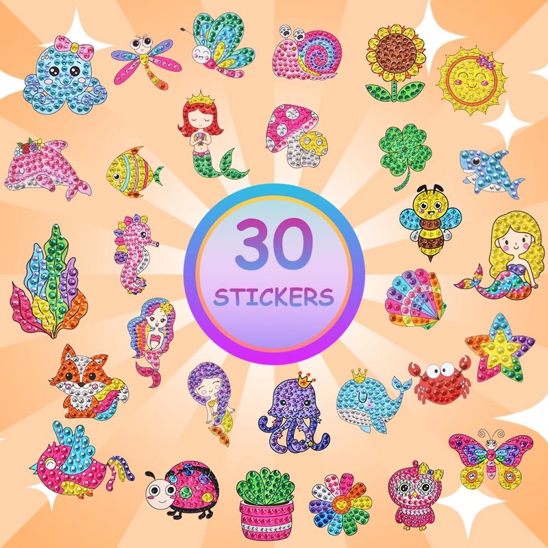 - 🧜【DIAMOND PAINTING STICKER SET】AUAUY provides a variety of pattern options to increase playability and interest. Our craft toy kit includes diamond 9/12/30/32 cute diamond stickers, round diamond bag and tool set, each diamond art sticker has a corresponding number, even young children can easily complete it! It is the best DIY crafting kit for kids. (Note that the internal parts are small, please use it with the company of parents)