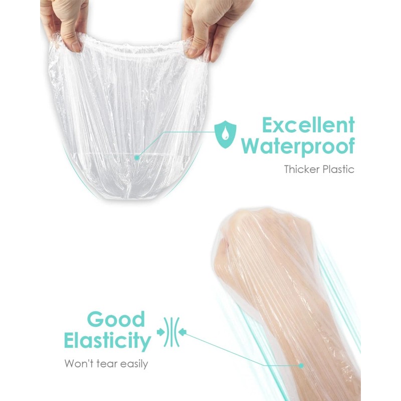 - 【Premium Quality Material】At high pressure, these stretchable bath caps are made of high quality transparent plastic, won’t tear during your bathing time. Enjoy your bathing time without fear of water getting through the cap
