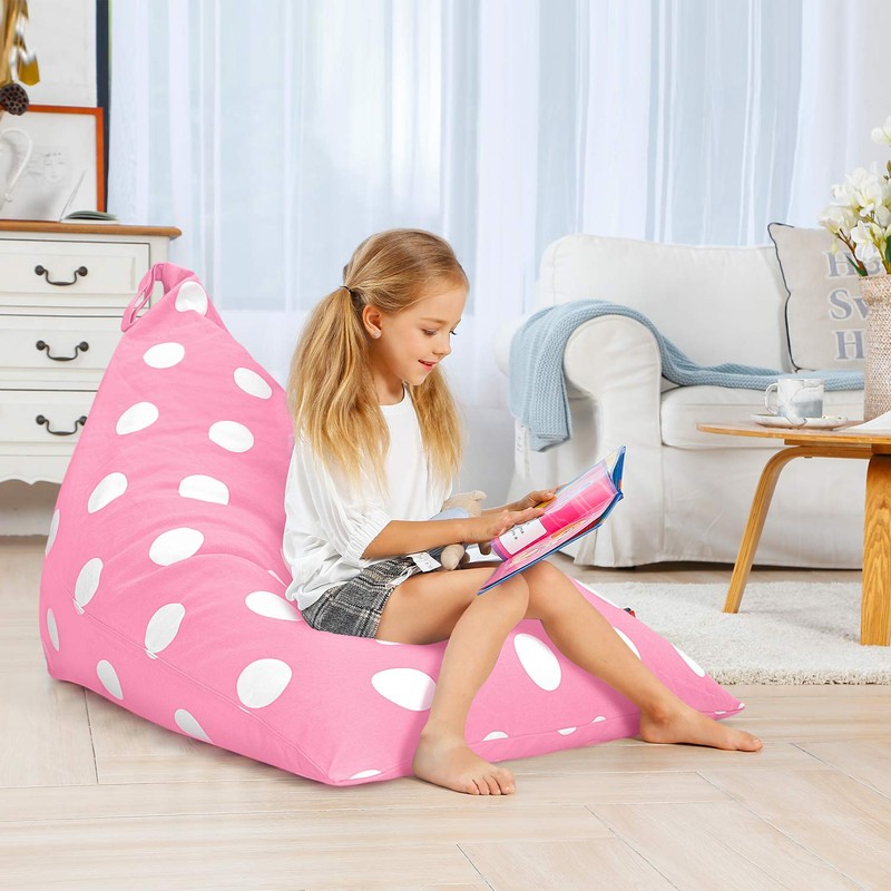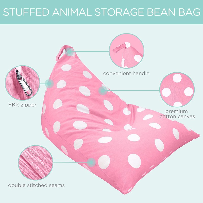 Aubliss Stuffed Animal Storage Bean Bag Chairs Cover, 50"x 35" Extra Large Bean Bags Chair for Kids & Adults, Beanbag Toy Storage for Boys Girls - Premium Cotton Canvas Pink Dot