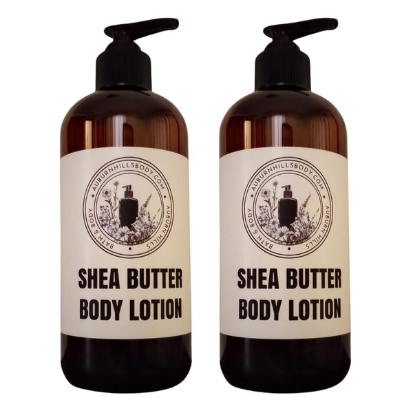- Auburn Hills Shea Butter Body Lotion with Cocoa Butter, Aloe Vera, Glycerin, and Vitamin E to naturally nourish and hydrate dry and damaged skin
