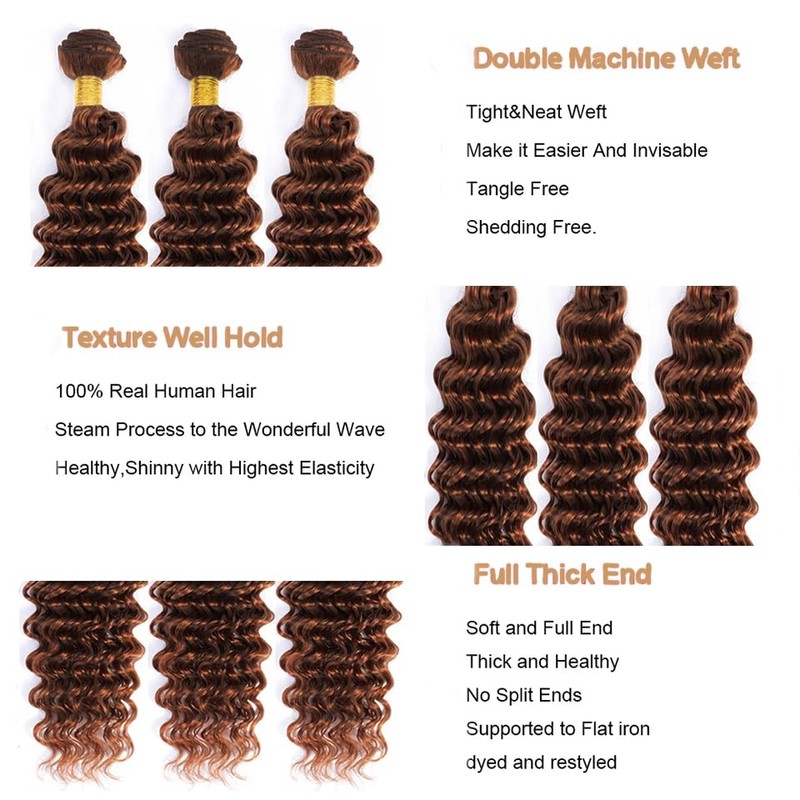3.Hair Curl: Brown Deep Wave Bundles Human Hair.