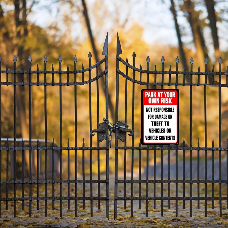 AUCCMORLY 8"x12" Aluminum Sign, Park at Your Own Risk Sign, Not Responsible for Damage Or Theft Parking Lot Sign, Metal Sign No Fading Outdoor Use
