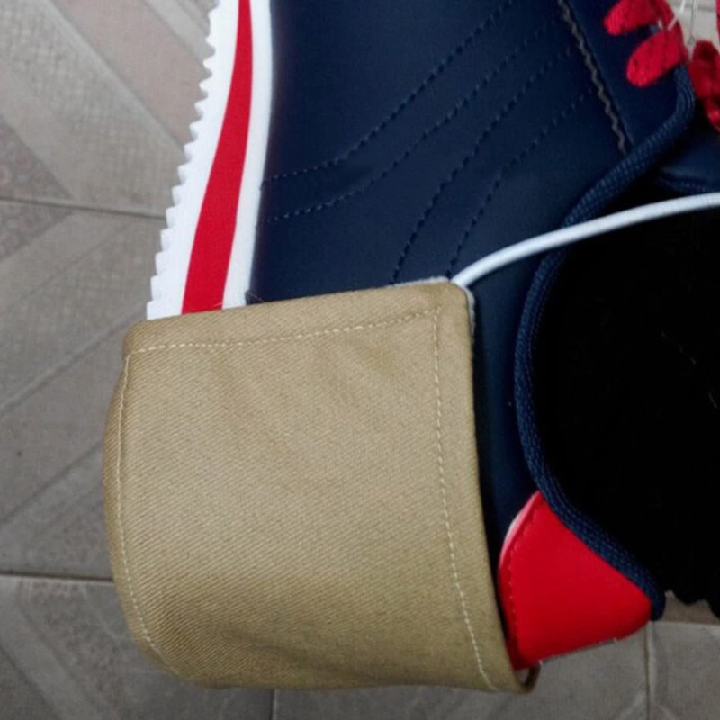- Place the heel cover on the back of the shoe and fit it snugly to the heel. After making sure it fits correctly, secure the heel cover with the elastic adjustment buckle.
