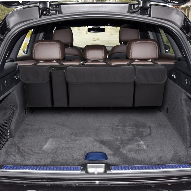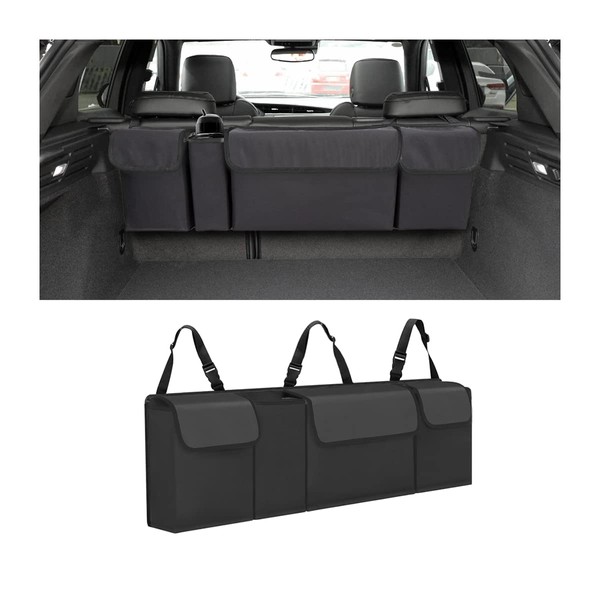 AUCELI Car Trunk Organizer, Backseat Hanging Large Storage with Adjustable Straps, Waterproof Collapsible Cargo Bag with 4 Pockets, Sturdy Space Saver Frees Trunk Floor for SUV, Truck, MPV (Black)