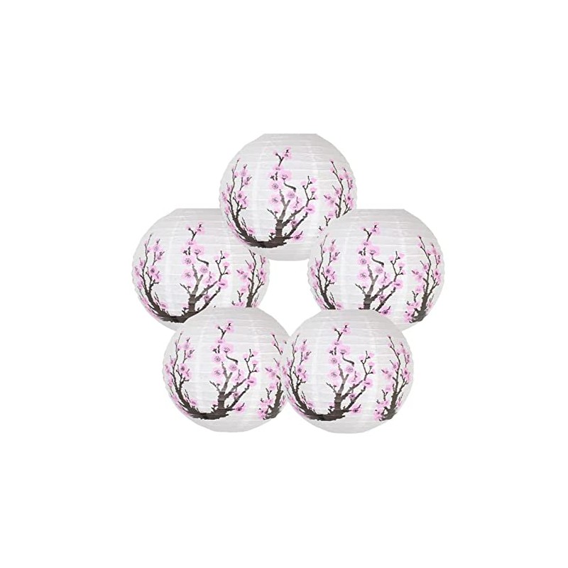 Auch 5 Pack Chinese Japanese Pink Cherry Flowers (12" Diameter) White Round Chinese Japanese Paper Lamp for Shade Chinese Oriental Style Light Restaurant Wedding Party Home Decor Gifts