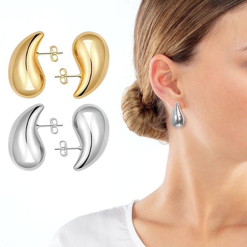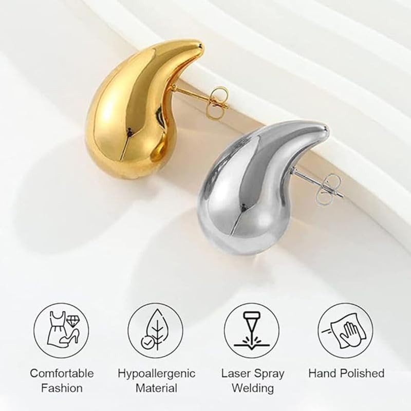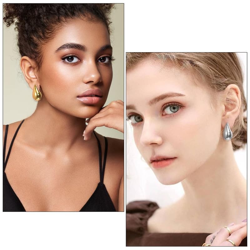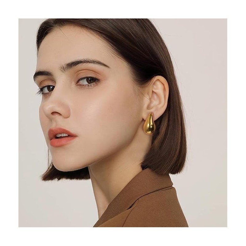 - 💧【Water Drop Inspired Design】Inspired by the drop shape, these chunky hoop earrings have smooth and elegant lines, which create a unique and luxurious feel. Teardrop earrings will be a popular accessory for women in 2023! It looks cute and chic.