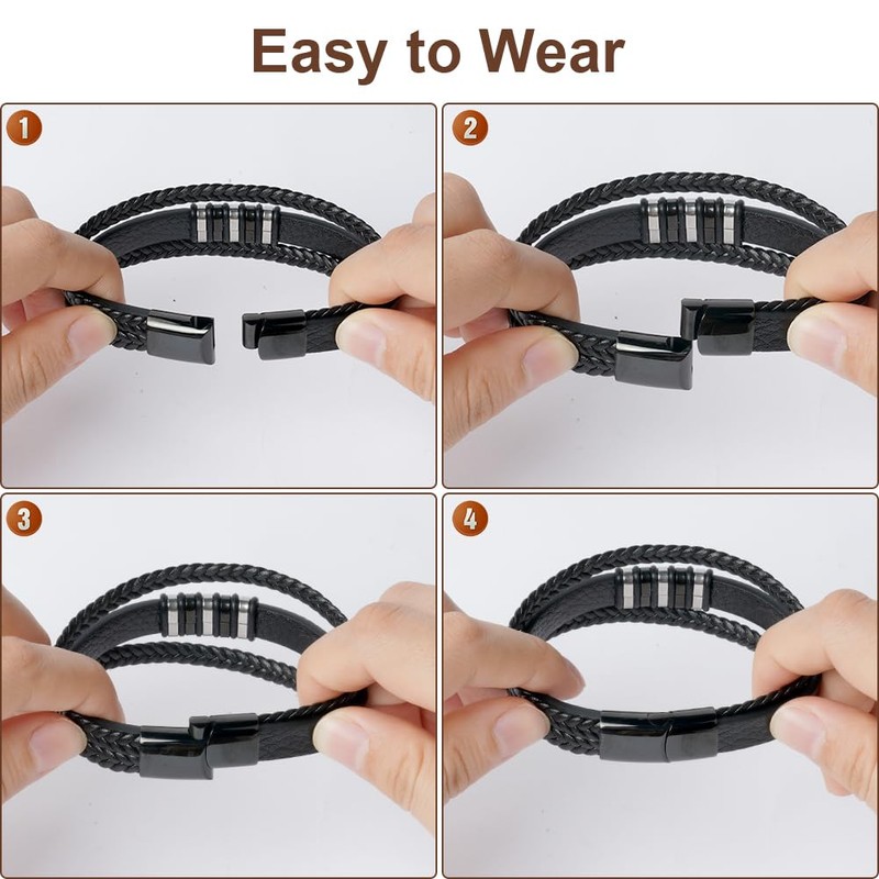 - 【Best Gift】The leather bracelet can be used as a wedding gift, birthday gift, anniversary gift, Valentine's Day, Christmas gift, Thanksgiving gift, etc. It is the best choice for dad, boyfriend, husband, brother, son, friends.