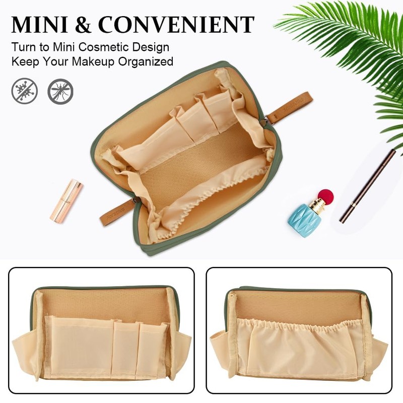 - 🎀【5 Compartments】The small cosmetic bag contains four compartments and one main compartment. The spacious middle area can hold large items such as foundation, eye shadow palette and sunscreen, while the smaller compartments can hold smaller items such as lipstick and eyebrow pencil, making it easy to find and perfect for cosmetic storage.