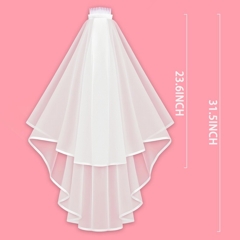 • Satin Edges Veil : This white bridal veil is specially designed for the bride, it's a classic two-layer veil, The satin edge is a subtle highlight and fits any wedding dress. Simple and elegant, and definitely won't take away from the details on your dress.