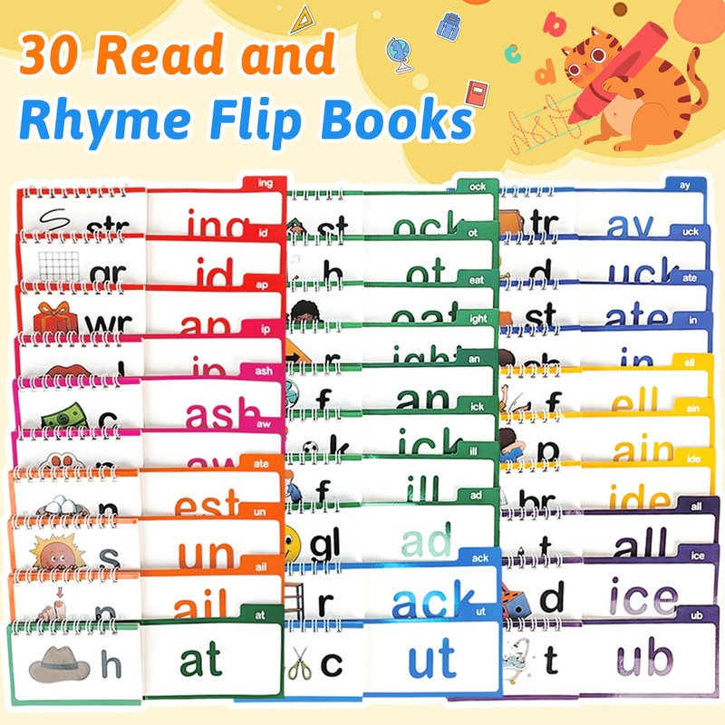 - 【Explore Essential Word Families】This set of read and rhyme flip books with 30 word families,introduces young learners to basic word families. Each word family contains a corresponding word and vivid pictures, making it easier for children to recognise word patterns and develop reading skills with confidence.
