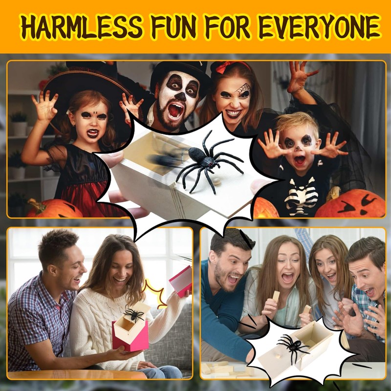 1. Our spider box set contains 2 packs, open the lid and the artificial rubber spider in the wooden box pops out and "bites" your finger. This is a classic joke toy that allows you to scare your friends and amuse others. This makes it an excellent joke toy that provides excitement and laughter at all kinds of social gatherings and occasions.