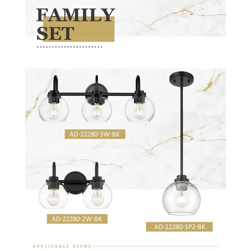 Bathroom Light Fixtures, 3-Light Matte Black Vanity Lights with Globe Clear Glass, Modern Vanity Lighting Fixtures Over Mirror, AD-22280-3W-BK