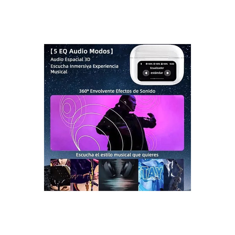 ¡Tecnología futurista en tus oídos! Los Keluona A9 Pro no son simples audífonos: son un centro de control portátil con pantalla TFT táctil 1.47"ANC inteligentesonido 3D personalizable y hasta control remoto de tu cámara. 🚀