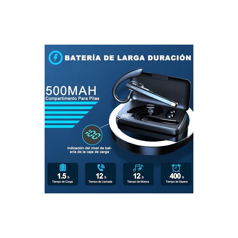 🌟 📱 Audífonos Inalámbricos Bluetooth 5.1, Auricularescon Micrófono, Reducción de Ruido CVC8.0 con Caja de Carga con Pantalla Digital LED para Conducción, Oficina, Todos los Smartphones y Tabletas 📱 🌟