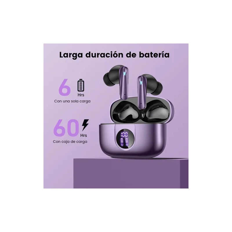 Audífonos inalámbricos bluetooth Occiam P91 In Ears Color Morado - Doble Micrófono Cancelación Ruido, 60H Total Playtime, 13mm Drivers HIFI, ANC 30dB, 45ms Latencia Baja, Carga Rápida 10min