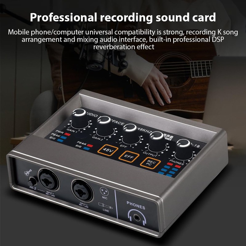 - ?? Professional Audio Interface : This audio interface features a built in professional DSP reverb effect, providing sound for your recordings. It's perfect for music recording, online karaoke, vocal recording, and more.