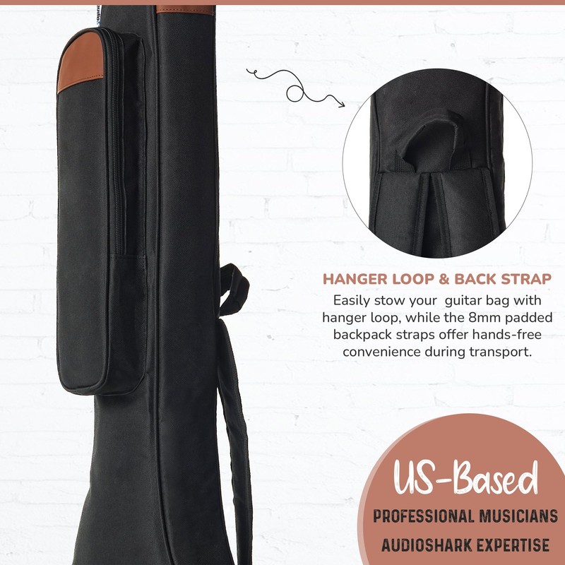 audioShark Bass Guitar Bag, 8mm Padded Gig Bag Backpack, Soft Black Bass Case, Ample Storage, Professional Design by US-Based Musicians, Durable and Lightweight, Perfect for Travel and Performances