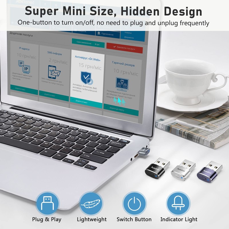 Auedrot metal mini mouse jiggler, with a switch button to turn on/off and freely switch between the "Slight Jiggler Mode" and "Random Jiggler Mode".