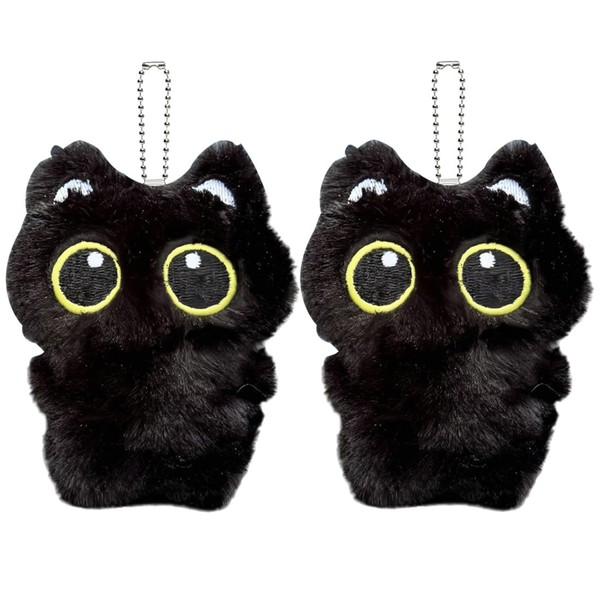 AUEFUDQ Pack of 2 Stuffed Cat Plush Keyrings, Black Cat Plush - Black Cat Plush Cartoon Plush Keyring, Black Cat Stuffed Toy Plush Key Accessories