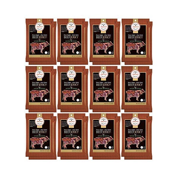 Aufschnitt Grass Fed Beef Jerky - Low Sodium, Certified Kosher - Made in USA - Keto Friendly - 12 Pack, Sweet Chipotle