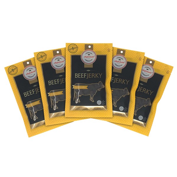 Aufschnitt Grass Fed Beef Jerky - Low Sodium, Certified Kosher - Halal and Keto Friendly - 5 Pack, Teriyaki