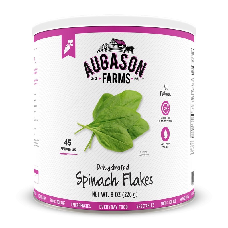 Dehydrated Spinach Flakes Emergency Food Supply, 45 Servings, 25 Year Shelf Life, 15 Calories per Serving - Dehydrated Meals, Survival Food Camping Essentials Can