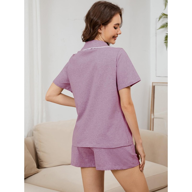 AUGCONE 100% Cotton Women's Pajama Sets Loungewear Button Down Soft Pjs Shorts with Pockets(Violet, S