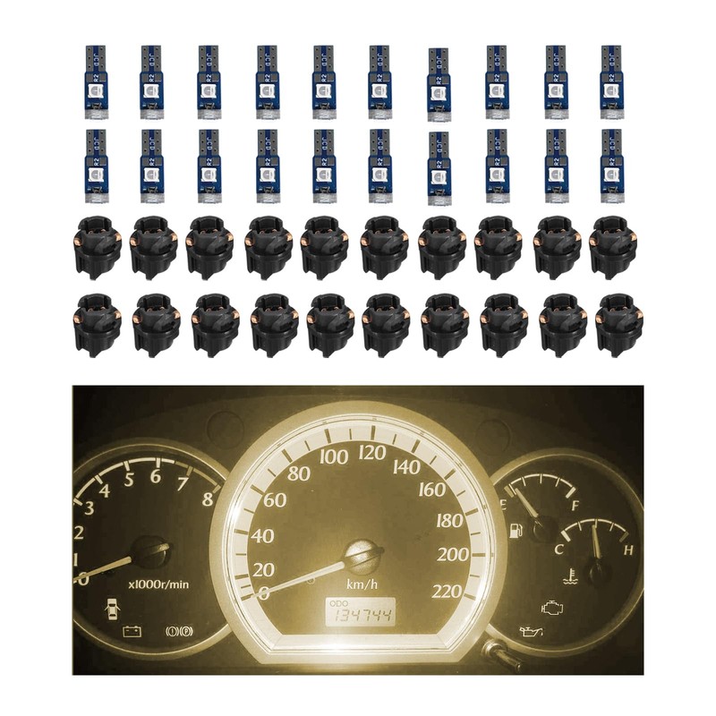 - 【Package Included】: The bulbs come in eight colors for you to choose from. The package contains 20 or 50 led light bulbs with corresponding number of twist sockets, sufficient quantity to meet your needs. It can directly replace many types of wedge bulbs, compatible with T5, 17, 18, 24, 27, 37, 58, 70, 73, 74, 79, 85, 86, 206, 207, 286, 306, 308, 406, 407, 2721.