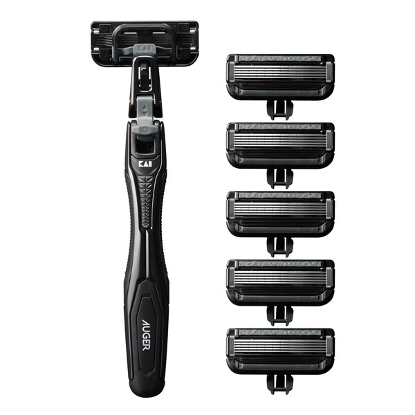 AUGER 5-Blade Razor Combo Pack, Holder + 6 Replacement Blades Included (Kai Corporation)