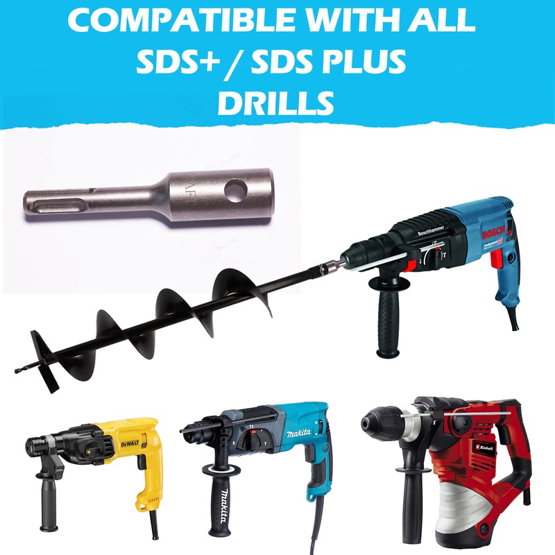 - 🔩 Very easy to use: the SDS PLUS profile fits all SDS PLUS drills (Compatible with: Bosch, Makita, Dewalt, Einhell...) and all augers with 20mm opening.