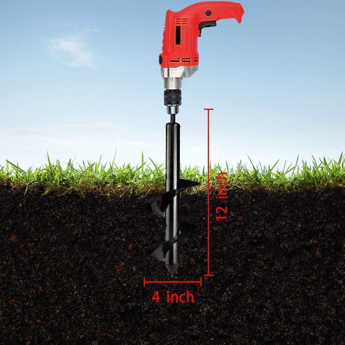 【Upgrade Drill Bit for Planting】Upgraded the shape of the spiral drill bit, increased the friction of the drill bit, more time saving, faster and more convenient. 4" x 12" auger drill bit which can be used with any electric or cordless drill (18V or greater drill recommended )that can compatible most 3/8" bit.