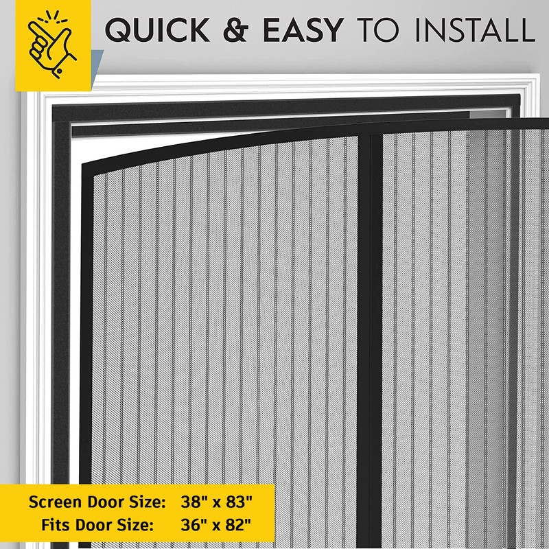• MAGNETIC SCREEN DOOR SIZE 38” x 83”, FITS DOOR SIZE 36" X 82": Ensure a perfect fit, by measuring your door (excluding door frame) prior to purchase. Works with sliding door, mosquito netting for patio, storm door, front door and more!