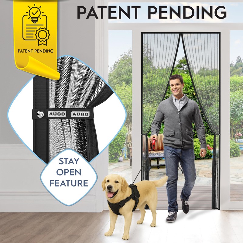 AUGO Magnetic Screen Door - Self Sealing, Heavy Duty, Hands Free Mesh Partition Keeps Bugs Out - Pet and Kid Friendly - Patent Pending Keep Open Feature - 38 Inch x 83 Inch