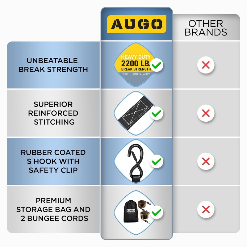 - FORMIDABLE 2,200 POUND BREAK STRENGTH | Straps Feature High-Quality Material & Extra Stitching for Indestructible Performance, Even When Maneuvering Loads Amidst Harsh Wind & Excessive Motion | Official Load Capacity is 733 Lbs Per Ratchet with Incredible 2,200-Lb Break Strength, But Trust Us—They’re Even Stronger!