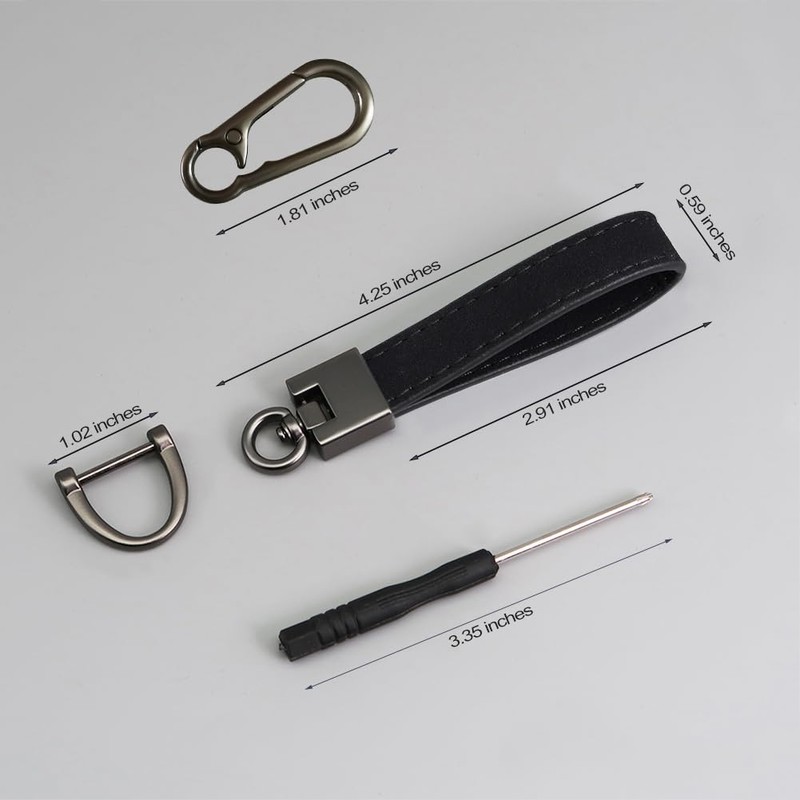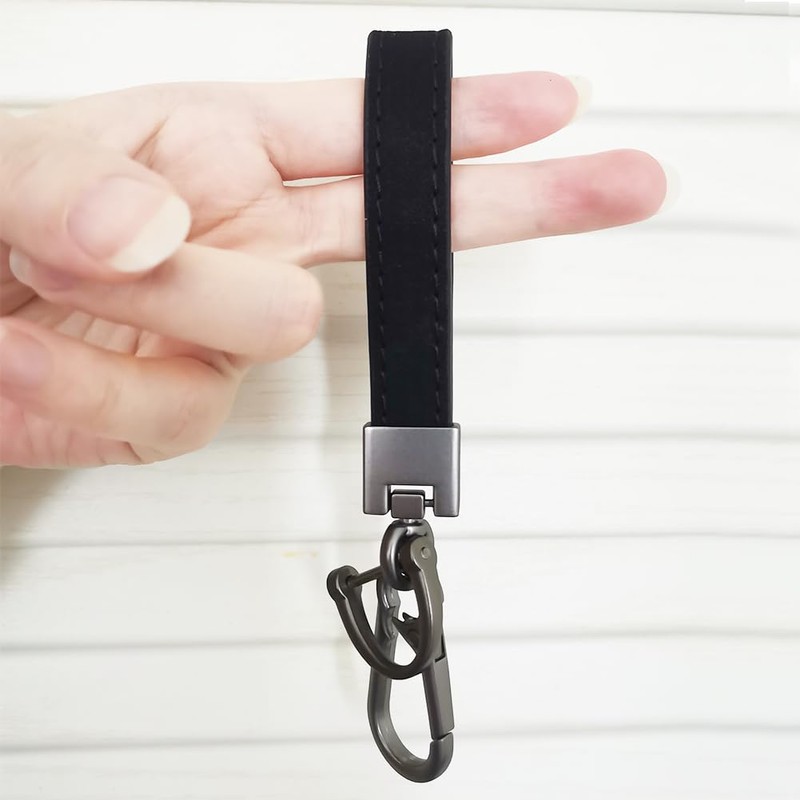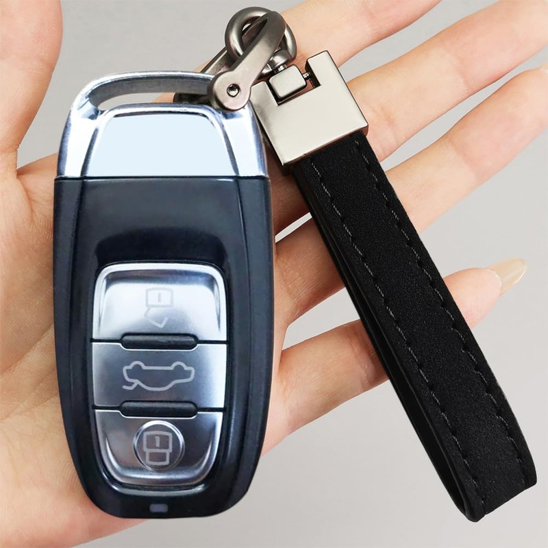 Augoing Leather Car Keychain, Universal Key Fob Key Chain for Car Keys, Handmade Lanyard Keychain with Swivel Clasps. (Black)